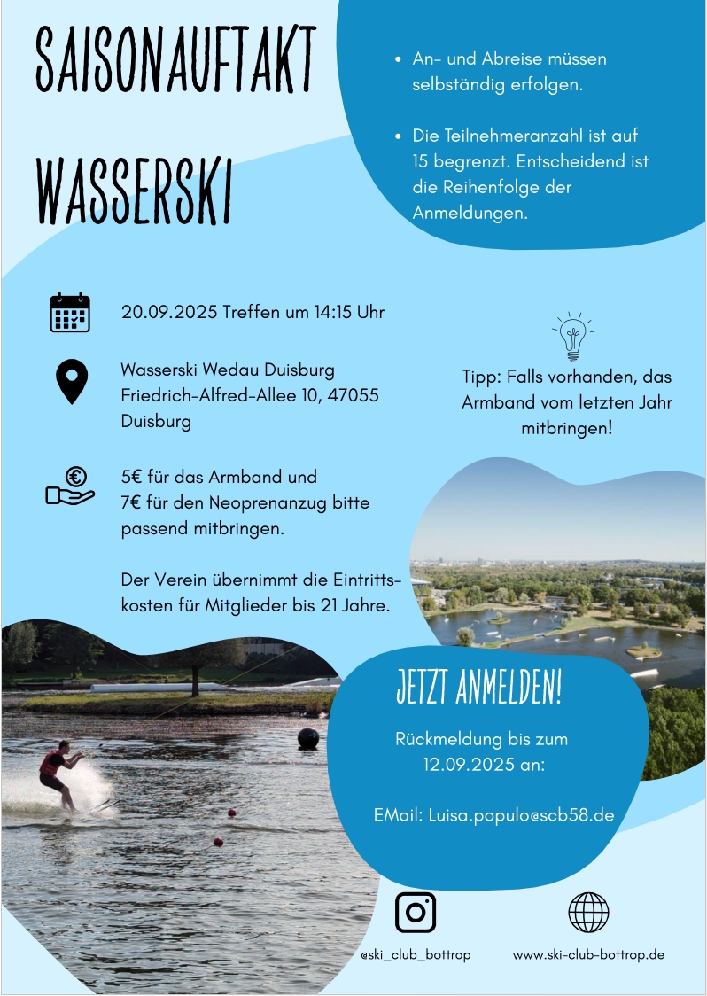 unser Saisonauftakt und damit das Wasserski fahren steht bevor. Deshalb noch ein paar Informationen von unserer Seite.